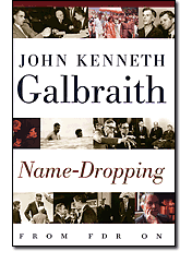 The other noteworthy thing I remember about my introduction to Galbraith is that reporters referred to him as a "liberal" and as standing and speaking for "liberalism." I had not heard the word before, my parents dividing the political world into the children of light (the Democrats) and the children of darkness (the Republicans), not into liberals and conservatives. Whatever a liberal was, if he was anything like as smart, superior, stylish, and funny as Galbraith, then I wanted to be one. If the reader can believe it, liberals were cool. To my delight, I later discovered that liberalism championed the cause of minorities and the poor and thus was in line with my own Catholic worldview. Liberalism, for me, was Catholicism in politics. Over the years, the Catholicism faded; the liberalism remains. Galbraith, it turns out, marked me deeper than The Church. Name-Dropping, his thirty-first book, displays the same Galbraithian qualities that wowed me at age twelve. And it adds insight into the leading political figures of the forties, fifties, and sixties. Galbraith was an early and ardent New Dealer who served the Roosevelt Administration in posts fitting his advanced education in economics. (He received a Ph.D. from Berkeley.) It fell to him, for example, to control U.S. prices during the Second World War. He found, as he later wrote, that it was not hard to fix prices that were "already extensively fixed" -- a discovery that proved to be a milestone in the growth of his mind. That the great corporations of the postwar era did not compete on price was one of the mature economic insights he developed in American Capitalism (1950) and The New Industrial State (1967); today that insight is a staple of reflection on the "era of oligopoly." Galbraith barely met FDR, but he and the other brainy young economists called into government service by the crisis of the Great Depression got close enough to the President to see something important about him. He was highly available intellectually. "He was a man of intelligence and a deep sense of social responsibility," Galbraith writes in Name-Dropping, "but he was also without a controlling personal ideology, social belief, of his own. That meant he was available to be persuaded; he was open to any well-stated solution to the great and painful problems of the time.... All of those around FDR admired and loved him because his actions were partly ours or could seem to be partly ours." He rounds off this striking observation with a vintage Galbraithian flourish of moral realism: "Thus, admiring ourselves, we admired him." Throughout his economics books, Galbraith is a student of non-economic motives like the desire for prestige. With him as with Adam Smith, economics leads back into moral psychology. Name-Dropping is a delightful portrait gallery of personages Galbraith knew or worked with in politics from FDR to Harry Truman, from Stevenson to JFK and LBJ. It is a short book, so it would not do to give away more of its treasures -- okay, just one more. Politicians told great stories to Galbraith because he clearly relished them. You can see LBJ warming to the task in this classic political story. Meeting Johnson outside the Vice President's office, Galbraith was invited in for a chat.