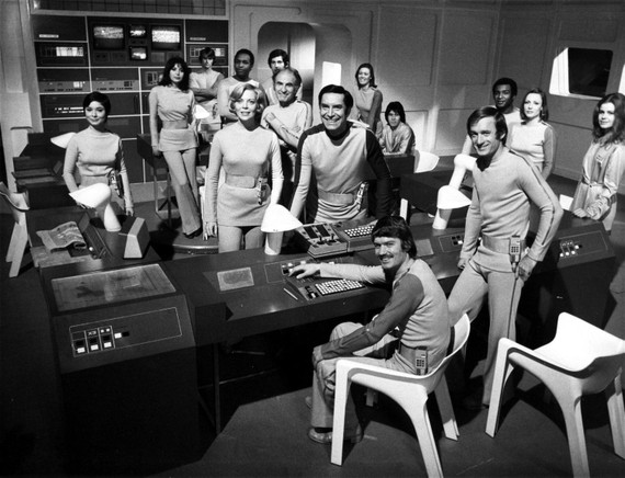 Although unisex clothing aimed to minimize gender differences, it usually had the opposite effect. As Paoletti writes, “part of the appeal of adult unisex fashion was the sexy contrast between the wearer and the clothes, which actually called attention to the male or female body.” Take the costumes fashion designer Rudi Gernreich—inventor of the monokini and the unisex thong—created for the 1975-77 television series Space: 1999. Gernreich envisioned 1999 as a gender-neutral utopia of jumpsuits, turtlenecks, and tunics. While technically unisex, these tight-fitting costumes made the wearer’s sex glaringly obvious, and they retained traditional gender markers such as bras, makeup, and jewelry for women.