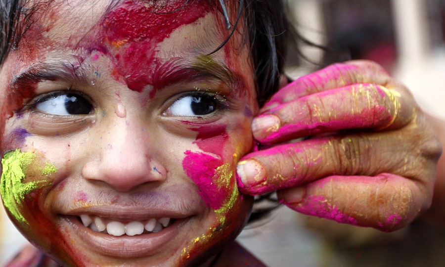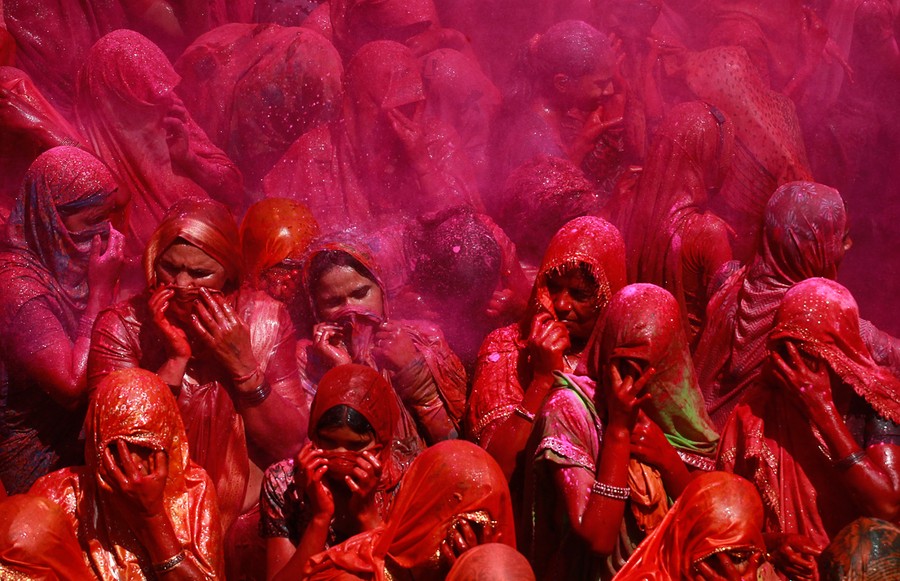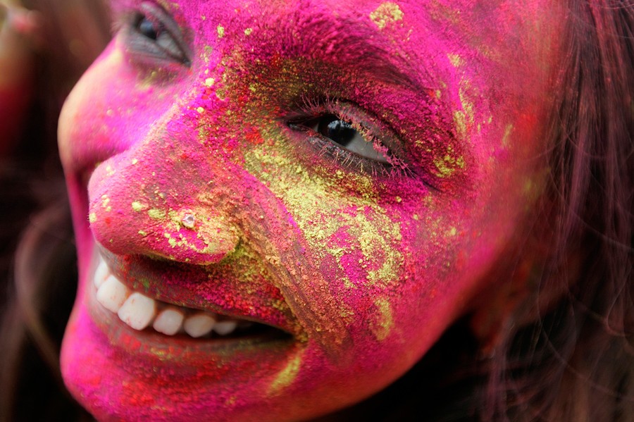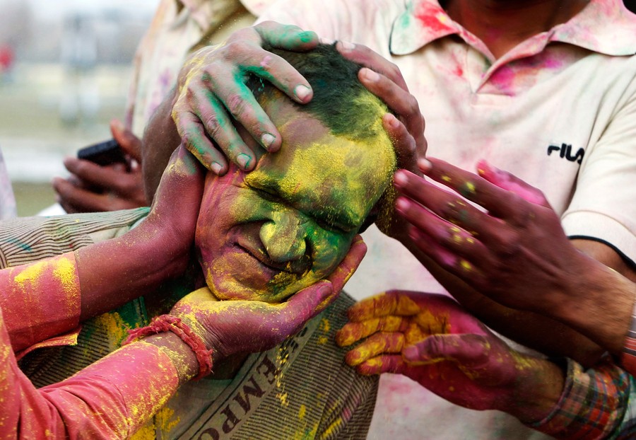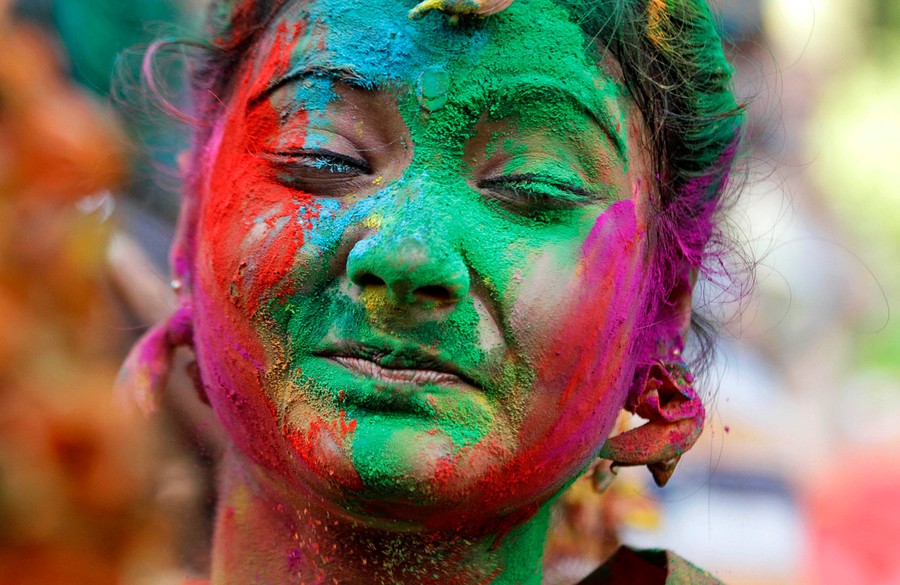 Around the world, Hindus celebrated Holi last weekend. Called the Festival of Colors, Holi is a popular springtime festival observed on the last full moon of the lunar month. Participants traditionally throw bright, vibrant powders at friends and strangers alike, celebrating the arrival of Spring, commemorating Krishna's pranks, and allowing everyone a momentary freedom -- a chance to drop their inhibitions and simply play and dance. Gathered here are images from this year's Holi celebrations across India and several other countries.