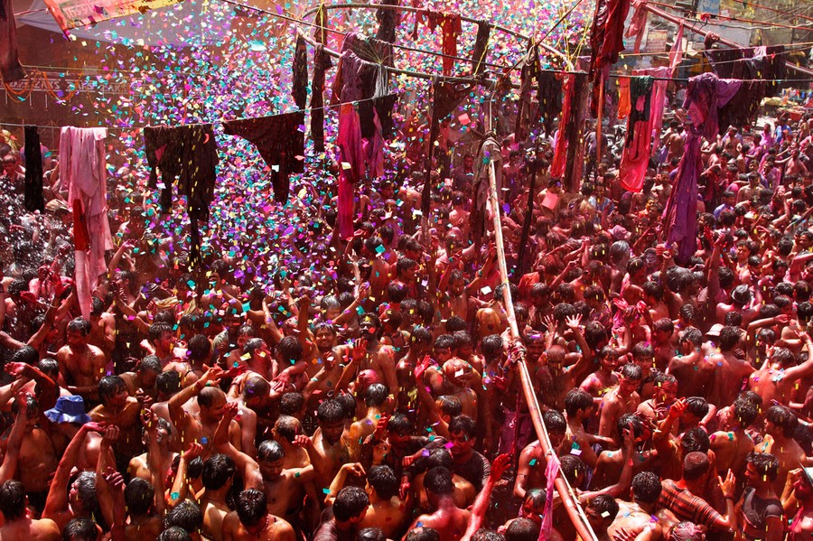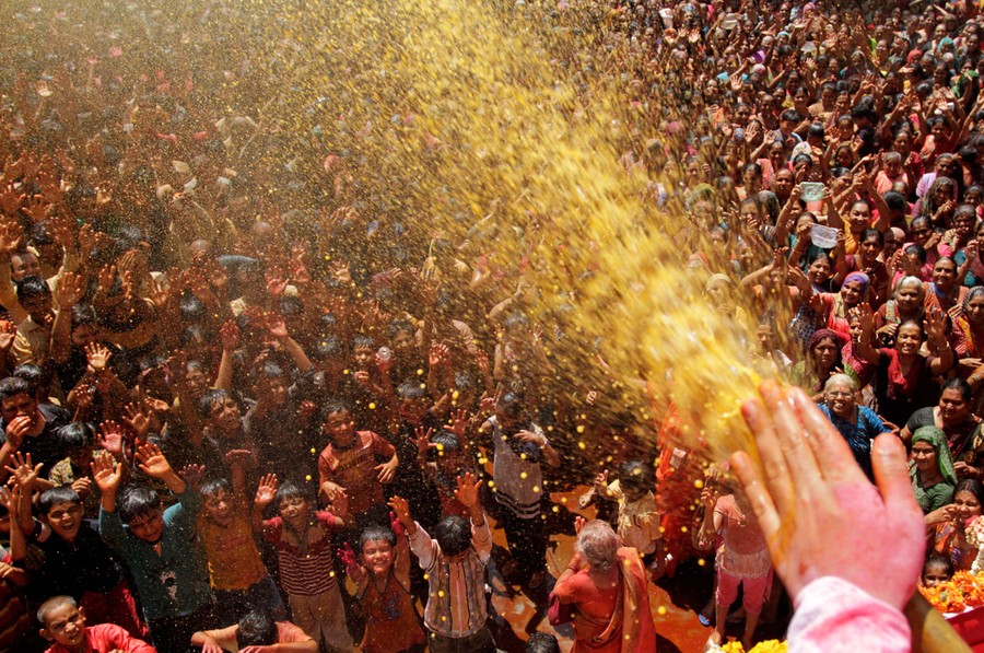 Read moreHindu devotees colored by powder thrown while celebrating Holi, the festival of color, crowd at the Banke Bihari temple in Vrindavan, about 140 kilometers (87 miles) from New Delhi, India, Friday, March 18, 2011. #