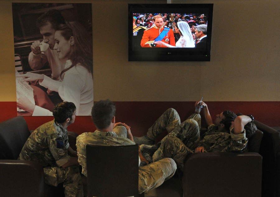 Read moreSpectators watch the royal wedding of Prince William and Kate Middleton on a screen at the Sendlinger Tor movie theater in Munich, Germany, on Friday, April 29, 2011. #