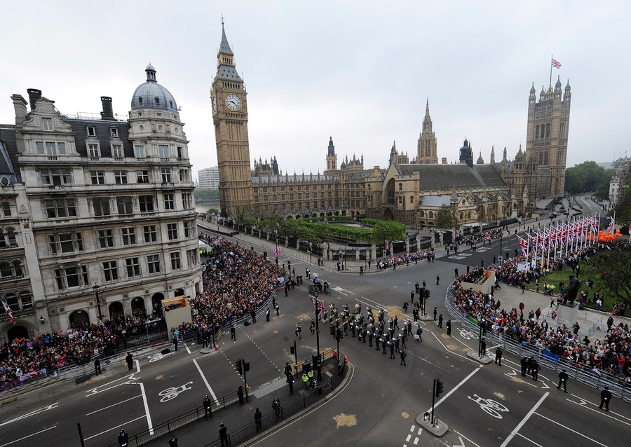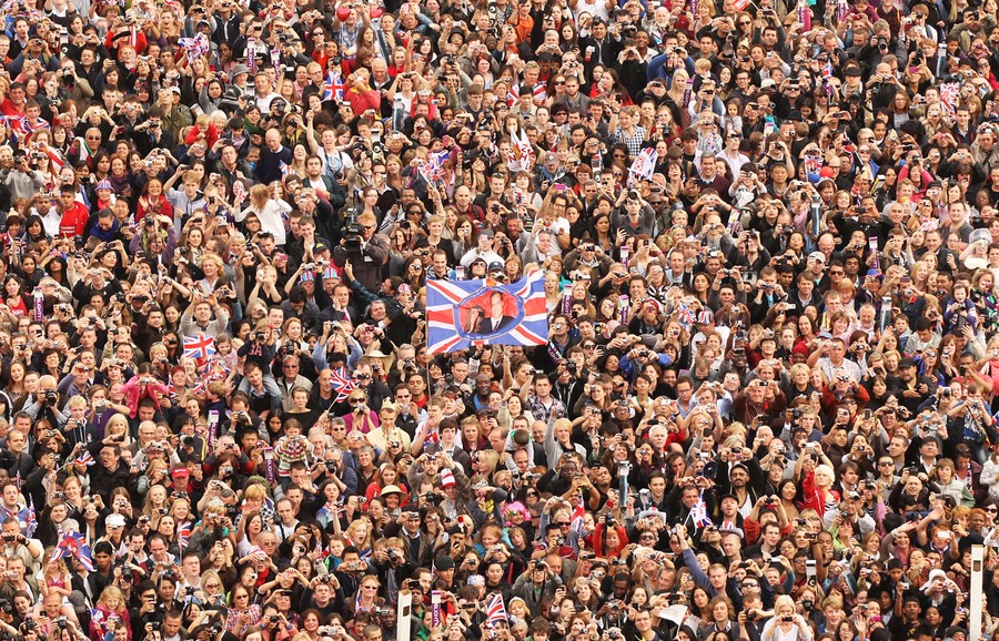 Read moreA general view of the Mall filled with well wishers celebrating the Royal Wedding of Prince William, Duke of Cambridge, and Catherine, Duchess of Cambridge, on April 29, 2011. #