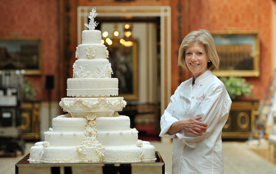 Read moreFiona Cairns stands in the Picture Gallery of Buckingham Palace next to the royal wedding cake that she and her team made for the wedding of Prince William and Catherine Middleton on April 29, 2011. #