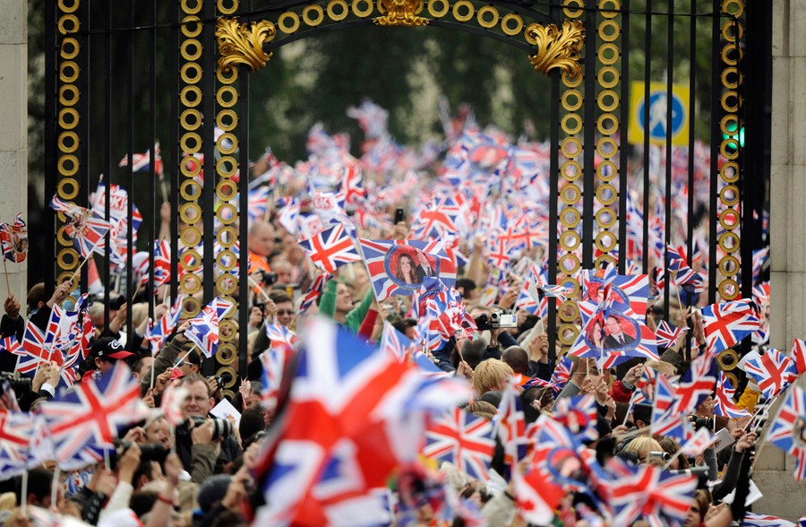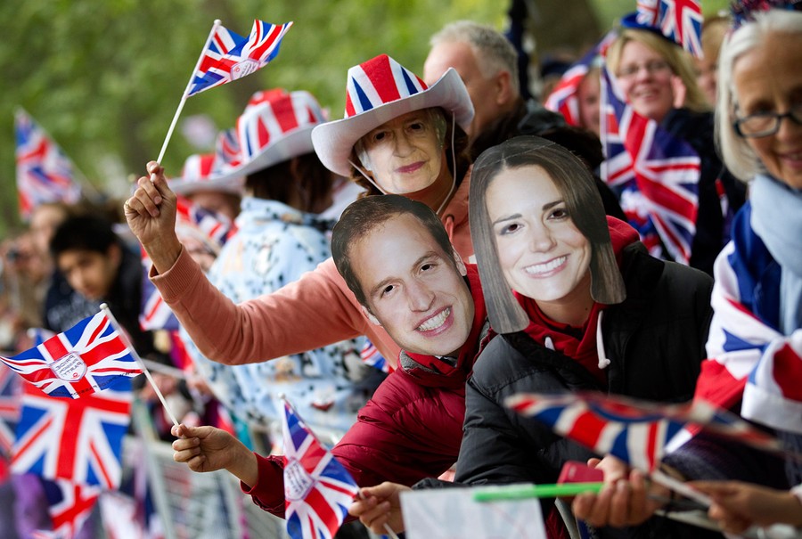 Read moreWell wishers, many wearing masks and waving flags, gather ahead of the royal wedding of Prince William to Catherine Middleton at Westminster Abbey on April 29, 2011. #