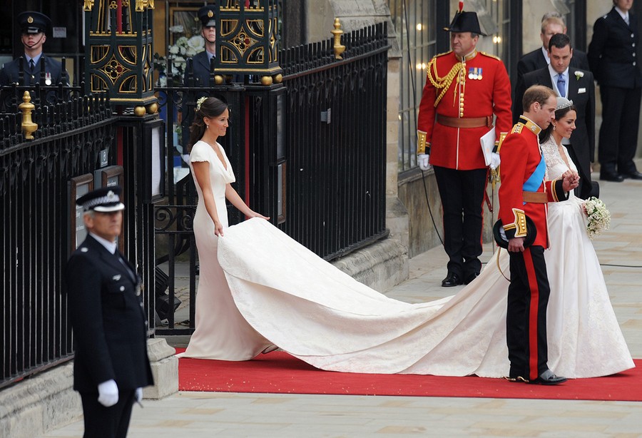 Read moreBritain's Prince William poses with his new wife Kate, Duchess of Cambridge, and her maid of honor, Philippa Middleton, in front of Westminster Abbey after the royal wedding on April 29, 2011. #