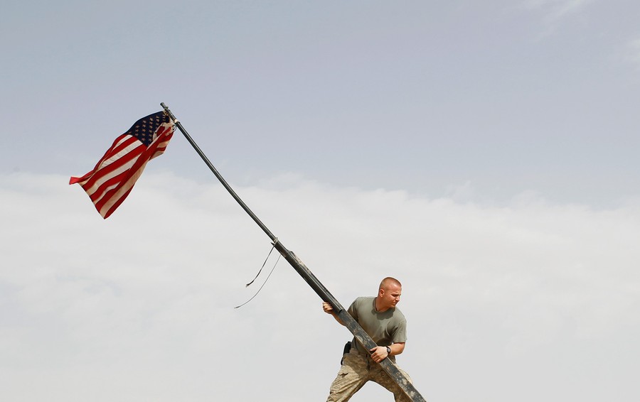Read moreU.S. Army SPC Jeremy Stocks from "Dustoff" team, C Company, 1-214 Aviation Regiment, 101st Combat Aviation Brigade restores a flagpole back in place after it fell during a night sandstorm at Camp Dwyer in Helmand Province, Afghanistan, on April 10, 2011. #