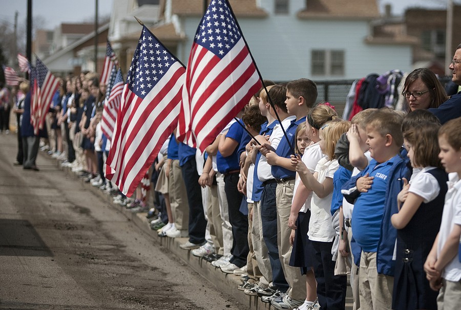 Read moreStudents from nearby St. Bavo Elementary School line the street outside Hahn Funeral home to show their respect for sailor Benjamin Rast in Mishawaka, Indiana on April 13, 2011. The military says Rast, a 23-year-old Navy medic of Niles, Michigan, died April 6 while on patrol in Afghanistan's Helmand Province. #