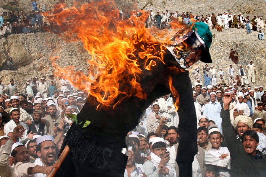 Read moreAn effigy of the American pastor, Terry Jones, is seen burning during a demonstration in Shinwar, Nangarhar Province, east of Kabul, Afghanistan, on Monday, April. 4, 2011. Protests erupted in Afghanistan again Monday against a Florida pastor's burning of the Quran, making four straight days of demonstrations some deadly against the destruction of Islam's holy book in a country struggling to beat back an insurgency led by Taliban religious extremists. #