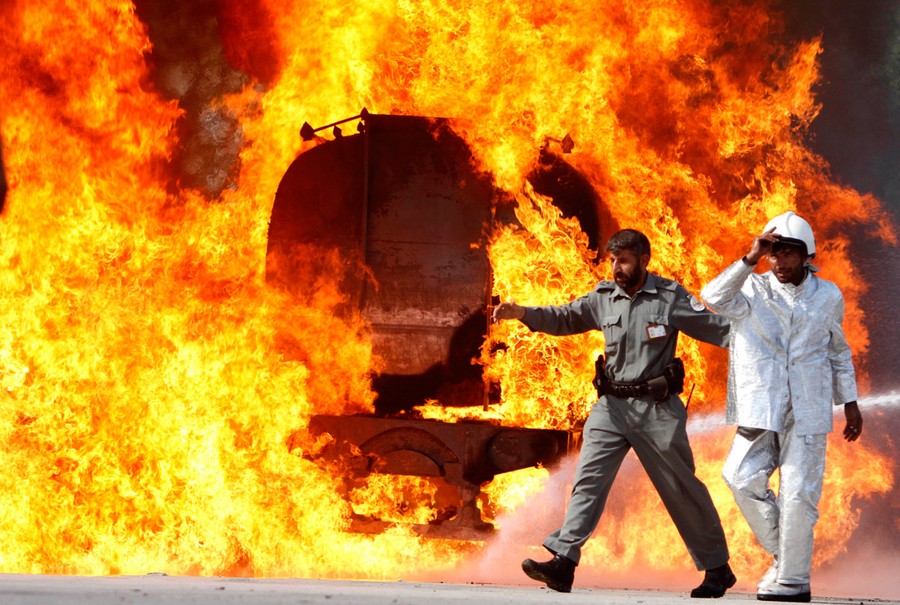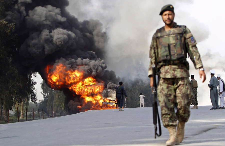 Read moreAn Afghan National Army (ANA) soldier walks away from the site of a burning tanker which was transporting fuel for NATO forces in Afghanistan on Jalalabad-Kabul highway April 27, 2011. #