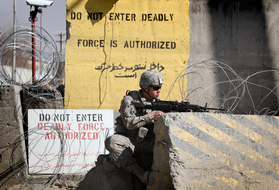 Read moreA U.S. soldier controls the area outside the gate of a U.S. base after an attack in Kabul, Afghanistan, on Saturday, April 2, 2011. Three insurgents attacked a NATO base on the outskirts of Afghanistan's capital Saturday but were killed by coalition forces before they could enter the compound, NATO and Afghan police said. #