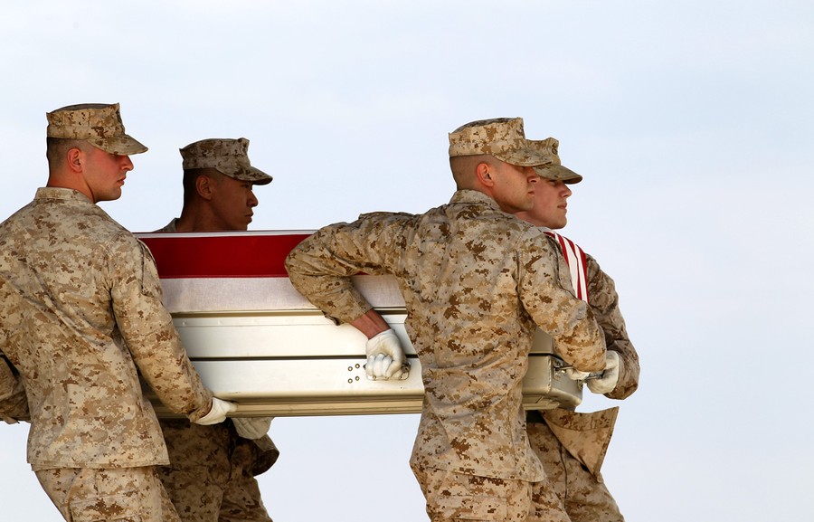 Read moreA Marine carry team carries the transfer case containing the remains of Marine Cpl. Adam D. Jones of Germantown, Ohio, upon arrival at Dover Air Force Base, Delaware on Friday April 29, 2011. Jones was supporting Operation Enduring Freedom in Afghanistan. #