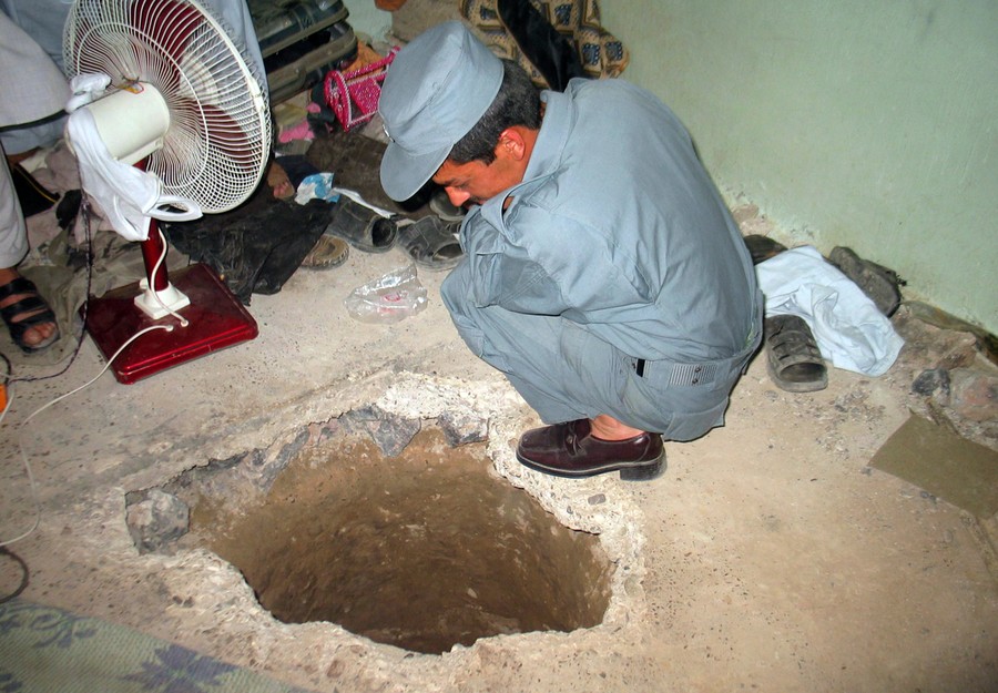 Read moreAn Afghan policeman takes a look at the opening of a tunnel at the main prison in Kandahar, Afghanistan, through which prisoners escaped on Monday, April 25, 2011. Taliban insurgents dug a more than 1,050-foot tunnel underground and into the main jail in Kandahar city and whisked out more than 450 prisoners, most of whom were Taliban fighters, officials and the insurgents said Monday. #