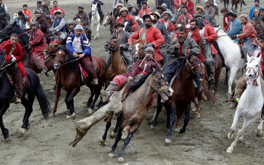 Read moreAn Afghan horseman holds a goat during a game of buzkashi, Afghanistan's national sport, in the private grounds of First Vice President Marshal Mohammad Qasim Fahim, in Kabul, Afghanistan, Friday, April 15, 2011. #