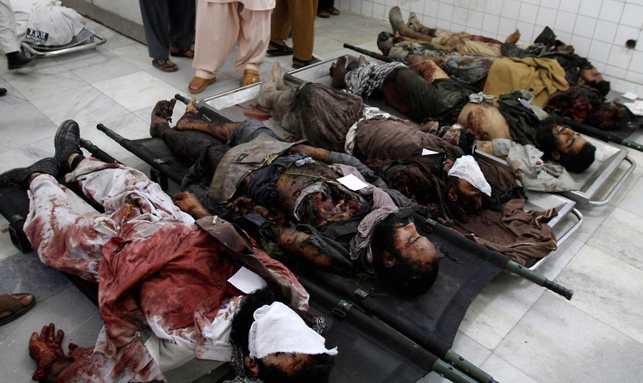 Click to view imageRead moreBodies of alleged Taliban militants lie at a hospital in Jalalabad in Nangarhar Province on April 6, 2011. Seven insurgents were killed overnight after launching a rocket attack on a military airport in the eastern city of Jalalabad, where the local provincial governor was present. #