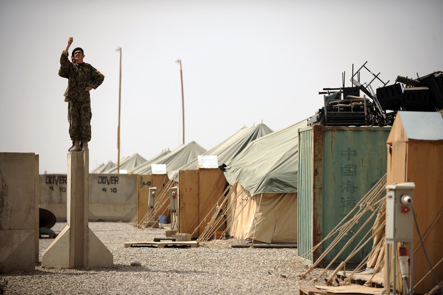 Read moreAfghan National Army soldiers from the 2nd Brigade, 215th Corps stand on top of a blast wall trying to get mobile phone coverage at Forward Operating Base (FOB) Delaram in southern Farah Province on April 6, 2011. Taliban militants regularly demand that mobile phone companies switch off their networks fearing that NATO-led forces can track them through phone signals. #