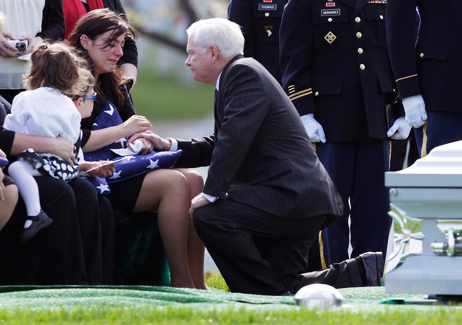 Read moreDefense Secretary Robert Gates comforts Jacqueline R. Gire, the widow of Staff Sgt. Joshua S. Gire, during burial services at Arlington National Cemetery in Arlington, Virginia, on Friday, April 15, 2011. Left of Jacqueline are her children Nicholas J. Gire and Riley J. Guire. Joshua S. Gire, 28 of Chillicothe, Ohio, died on March 22, 2011, in Logar Province, Afghanistan, while supporting Operation Enduring Freedom. #