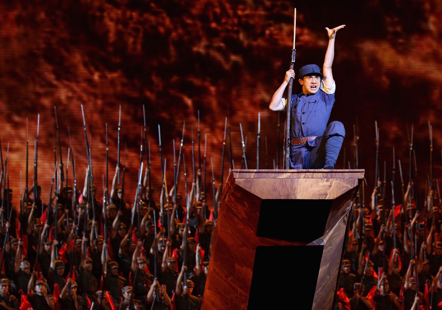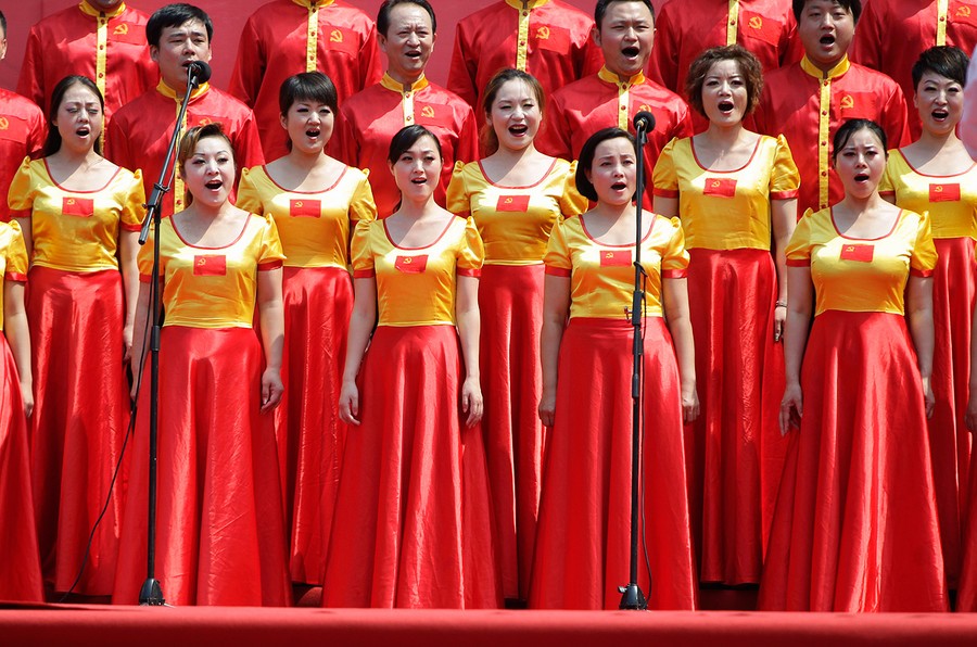 Last Friday, July 1, China's Communist Party celebrated its 90th anniversary. Through a carefully choreographed week of events -- including concerts, revolutionary re-enactments, TV shows, a star-studded propaganda film, and a gala event in Shanghai -- the party emphasized its populist origins. The celebration culminated in a 90-minute speech by Chinese President Hu Jintao, where he extolled the 90 years of Communist Party rule but acknowledged the current need to fight state corruption. Collected here are some of the scenes from around the country, as members and supporters of China's Communist Party celebrated the nine decades since its founding.