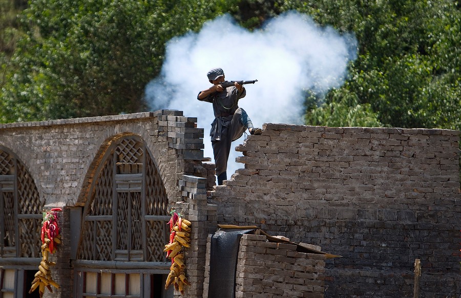 Read moreAn actor dressed as a Communist Red Army soldier aims his rifle during a battle re-enactment of the Defense of Yan'an, at a tourist attraction in Yan'an, in northwestern China's Shaanxi province, on Wednesday, June 29, 2011. #