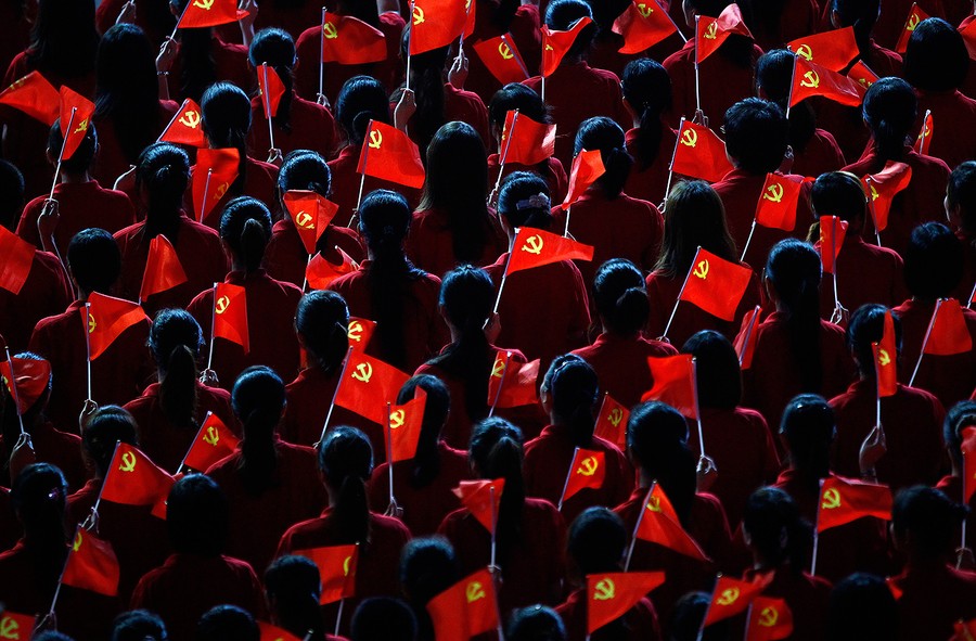 Read morePerformers hold flags of the Communist Party of China during an event to celebrate the 90th anniversary of the founding of the party, at the Mercedes-Benz Arena in Shanghai, on June 30, 2011. #