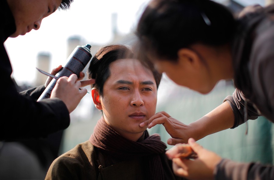 Read moreWang Pengkai, an actor playing the part of China's former Chairman Mao Zedong, has his make-up applied (including Mao's famous mole on his chin), during the filming of the upcoming television drama on the founding of China's Communist Party in Weihai, Shandong province June 13, 2011. #