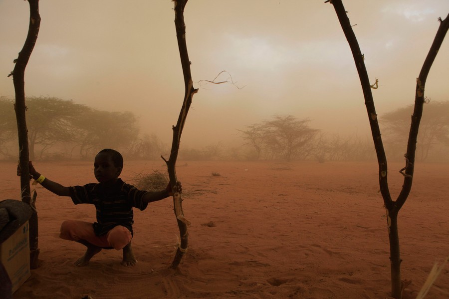 Read moreA boy from the family of Rage Mohamed is caught in wind-blown dust as his family builds a makeshift shelter around a thorny acacia tree, on the outskirts of Dagahaley Camp, outside Dadaab, Kenya, on July 10, 2011. It took the 15-person family five days to make the journey from their drought-stricken home in Somalia. They spent two nights sleeping in the open air under the tree prior to receiving tarps on Sunday. #