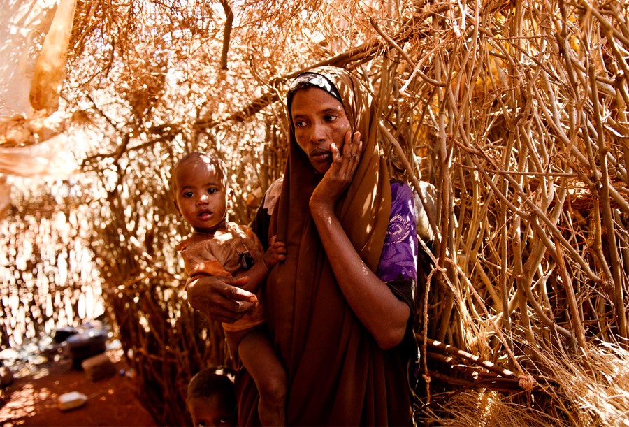 With East Africa facing its worst drought in 60 years, affecting more than 11 million people, the United Nations has declared a famine in the region for the first time in a generation. Overcrowded refugee camps in Kenya and Ethiopia are receiving some 3,000 new refugees every day, as families flee from famine-stricken and war-torn areas. The meager food and water that used to support millions in the Horn of Africa is disappearing rapidly, and families strong enough to flee for survival must travel up to a hundred miles, often on foot, hoping to make it to a refugee center, seeking food and aid. Many do not survive the trip. Officials warn that 800,000 children could die of malnutrition across the East African nations of Somalia, Ethiopia, Eritrea, and Kenya. Aid agencies are frustrated by many crippling situations: the slow response of Western governments, local governments and terrorist groups blocking access, terrorist and bandit attacks, and anti-terrorism laws that restrict who the aid groups can deal with -- not to mention the massive scale of the current crisis. Below are a few images from the past several weeks in East Africa. One immediate way to help is to text "FOOD" to UNICEF (864233) to donate $10, enough to feed a child for 10 days, more ways to help listed here.