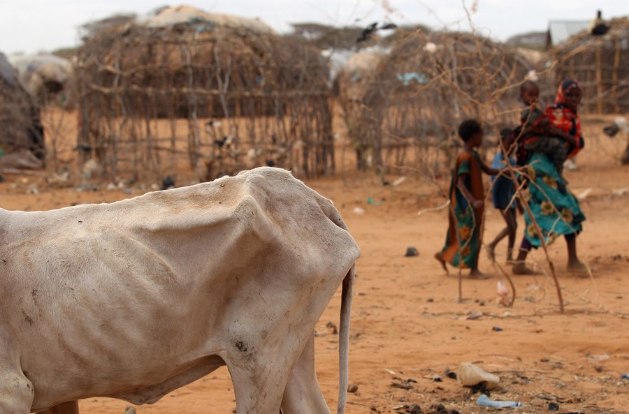 Read moreRefugee children walk past emaciated cattle in the outskirts of the Dagahaley refugee camp, which makes up part of the giant Dadaab refugee settlement, on July 23, 2011. #