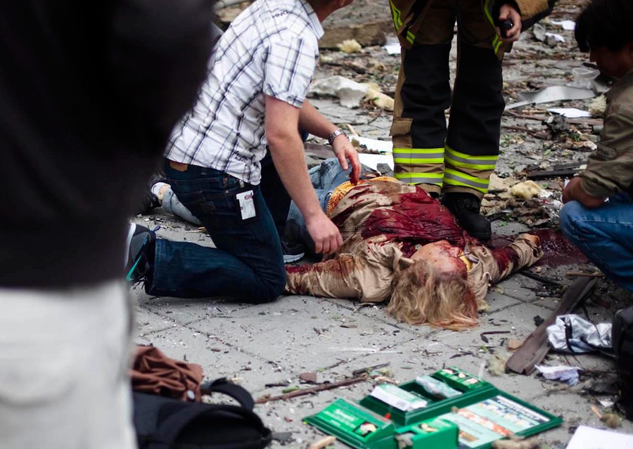 Last Friday in central Oslo, Norway, a massive explosion ripped through government buildings and sent debris flying through the streets, killing eight people and wounding 15. Some 90 minutes later, Anders Behring Breivik, the man accused of building and detonating that bomb, boarded a ferry to a small island that was hosting a Labour Party youth camp. Breivik, reportedly dressed as a policeman, lured the young campers close and opened fire. The shooting spree went on for more than an hour. By the time police finally arrived and arrested Breivik, at least 68 of the campers had been killed. Norway spent the weekend in mourning, and the country will face more difficulty in the weeks ahead as funerals and criminal proceedings take place. Collected below are a few images of these tragic events in Norway.