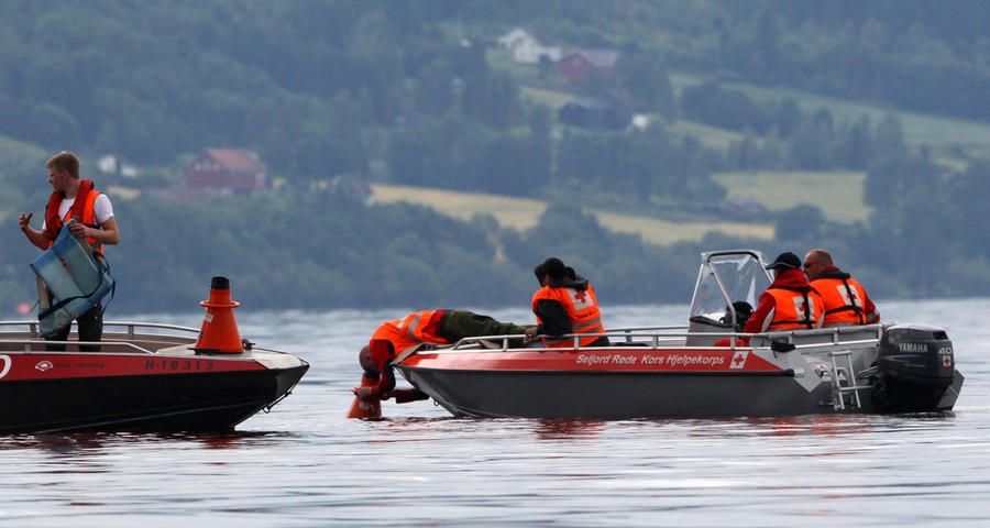 Read moreWounded people are brought ashore opposite Utoya island (background) after being rescued from a gunman who went on a killing rampage targeting participants in a Norwegian Labour Party youth organization event on the island, on July 22 , 2011. #