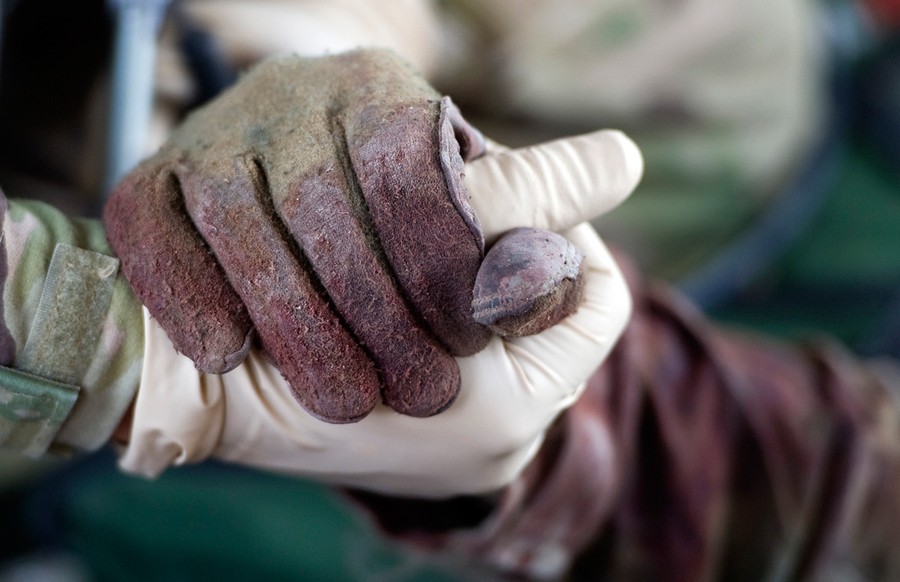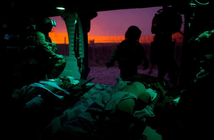 Read moreUS Army Flight Medic Brandon Lowther (left) holds the hand of a fatally wounded US army soldier as he is airlifted by the Medevac helicopter of 159th Brigade Task Force Thunder, on August 24, 2011, to Kandahar Hospital Role 3. Two US soldiers were heavily injured by gun shots and brought to the hospital. #