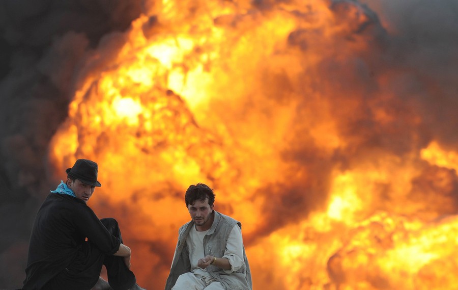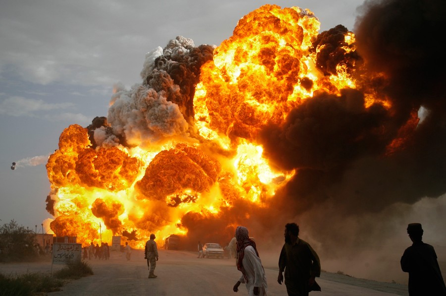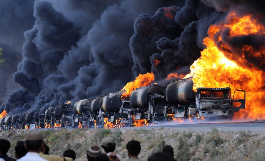 Read moreMen retreat as a fireball rises from tankers which were carrying fuel for NATO forces in Afghanistan, as they explode after being attacked on the outskirts of Quetta, Pakistan, on August 19, 2011. There were no reported casualties. #