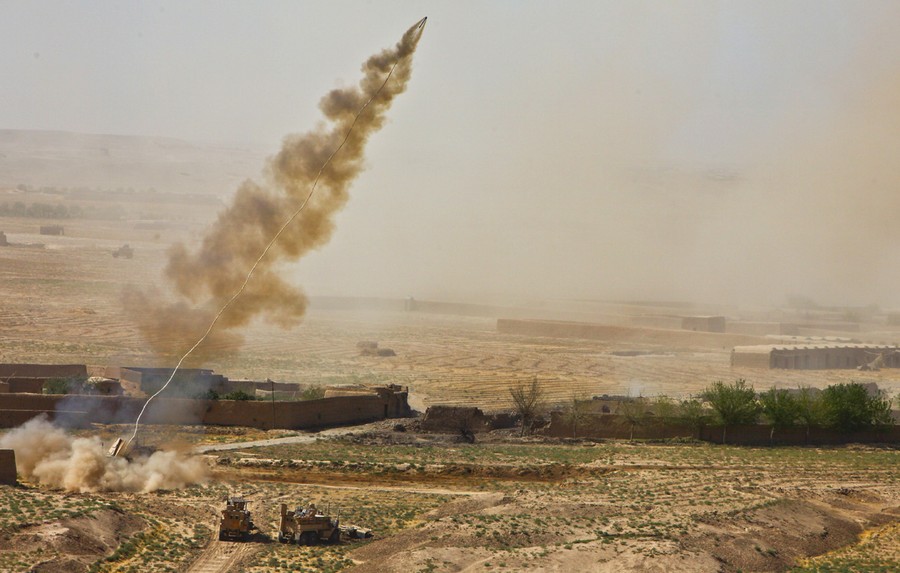 Read more(1 of 2) An assault breaching vehicle with 2nd Combat Engineer Battalion fires a line charge to clear Improvised Explosive Devices in and around the Ladar Bazaar in Shukvani, Helmand province, Afghanistan. The charge is comprised of 1,750 pounds of C4 explosive and is spread along a 350-foot rope. #
