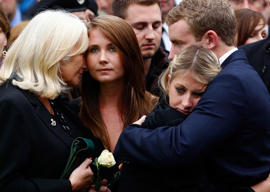 Read moreBritish Army Lieutenant Daniel John Clack's fiancee Amy Tinley (2nd from left), mother Sue Clack (left), and brother James (right) gather just before his coffin is driven through the town of Wootton Bassett, England, on August 18, 2011. Clack, 24, of the 1st Battalion The Rifles was killed while serving in Afghanistan the Friday before. #