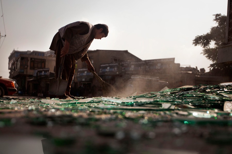 Read moreAn Afghan shopkeeper clears shattered glass outside his shop near the British Council in Kabul, Afghanistan, on August 20, 2011. The nation's capital was recovering Saturday from an eight-hour assault on a British compound a day earlier killing eight people, including four police officers, two Afghan security guards, two foreign security guards and wounding dozens. #