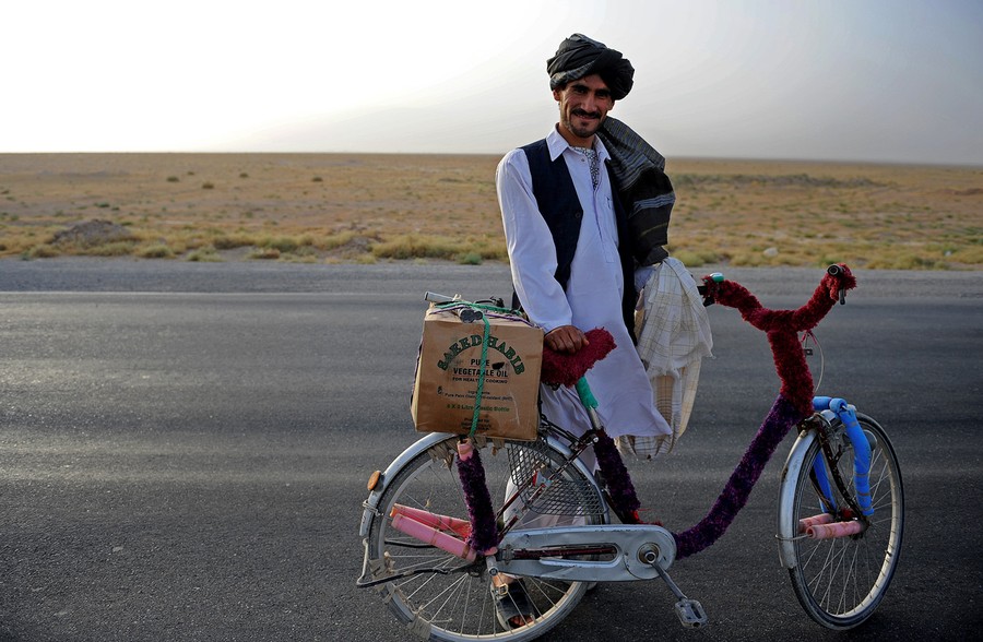 Read moreAn Afghan man stops to pose for a photo while riding his bicycle along Highway 1 in Zabul province, Afghanistan, on August 23, 2011. Unlike many countries, it is normal for the people of Afghanistan to bicycle roughly 100 kilometers a day to transport food. #