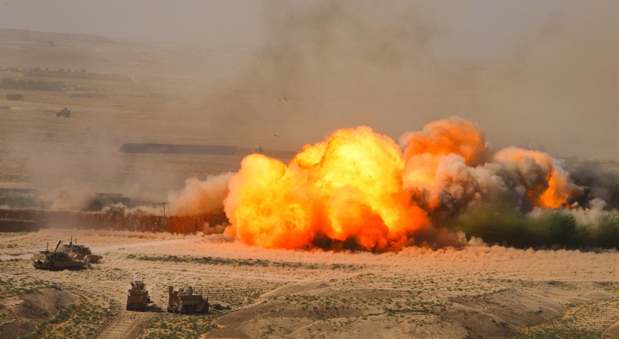 Read more(2 of 2) An explosion rocks the ground in the Ladar Bazaar in Shukvani, Helmand province, Afghanistan, after a line charge is detonated. Second Combat Engineer Battalion leveled the marketplace to clear it of Improvised Explosive Devices and make the area a safer place for local residents. #