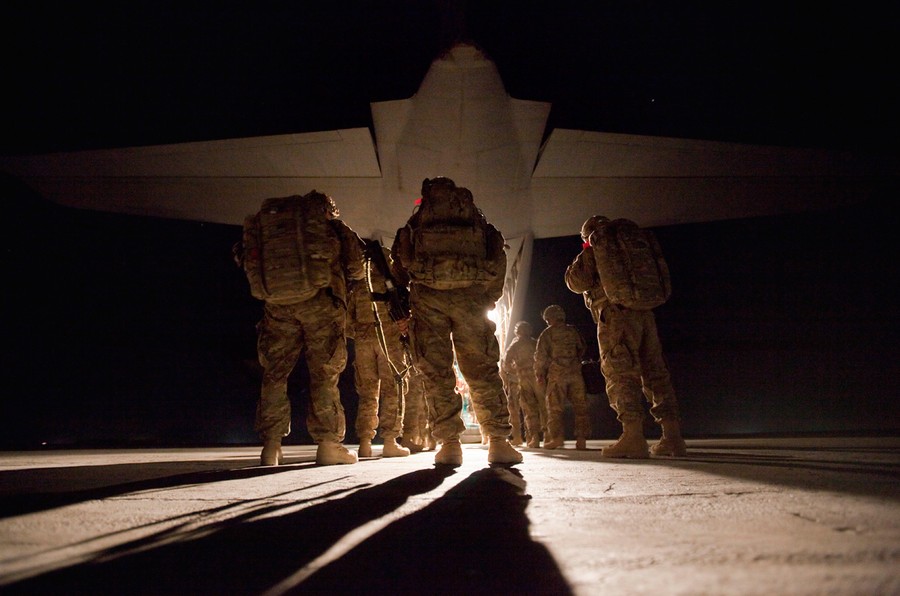 Read moreSoldiers with the U.S. Army's 506th Infantry Regiment, 4th Brigade Combat Team, 101st Airborne Division out of Fort Campbell, Kentucky, board a plane as they begin their journey home upon completion of their year-long deployment, on August 4, 2011 at Forward Operating Base Sharana in Paktika province, Afghanistan. The 4th Brigade Combat Team was the last brigade to deploy as part of President Obama's 30,000 troop surge. #