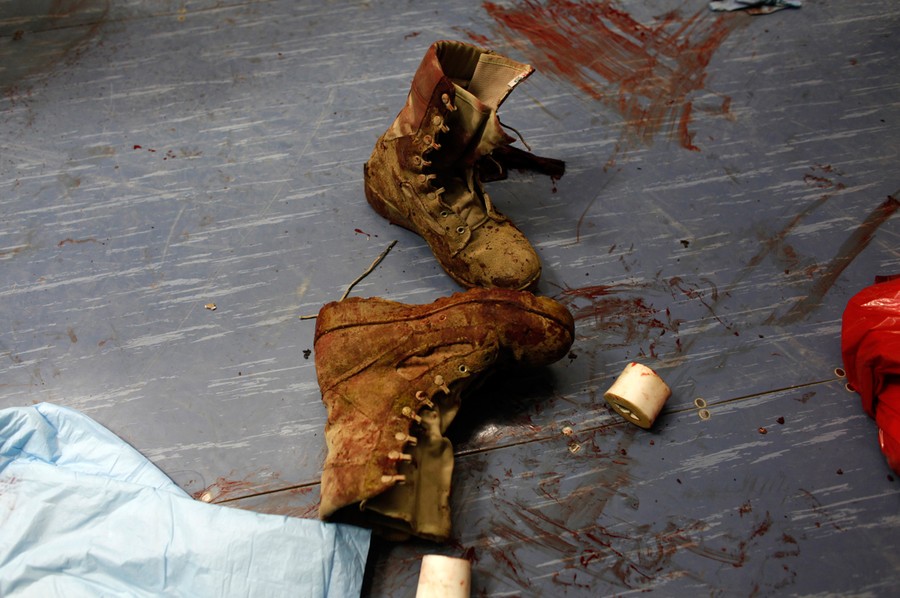 Read moreAn Afghan National Army soldier's boots, covered in blood, lie on the floor at 125 BSB Forward Surgical Team Task Force Mustang's clinic in Forward Operating Base (FOB) Shank in Logar province, on November 12, 2011. #