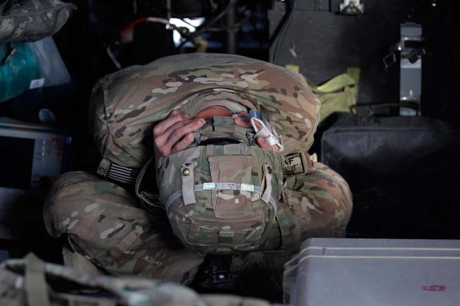 Read moreA U.S. Army soldier leans over, in pain after he was injured by an IED (improvised explosive device) in a MEDEVAC helicopter in Logar province, eastern Afghanistan, on November 21, 2011. #