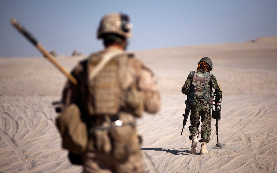 Read moreAfghan National Army Sgt. Shah Baaz uses a metal detector to sweep the ground under the watch of U.S. Marine Lance Cpl. Zachary Fisher, a 22-year-old fire team leader with 3rd Platoon, India Company, 3rd Battalion, 3rd Marine Regiment, on December 30, 2011. #