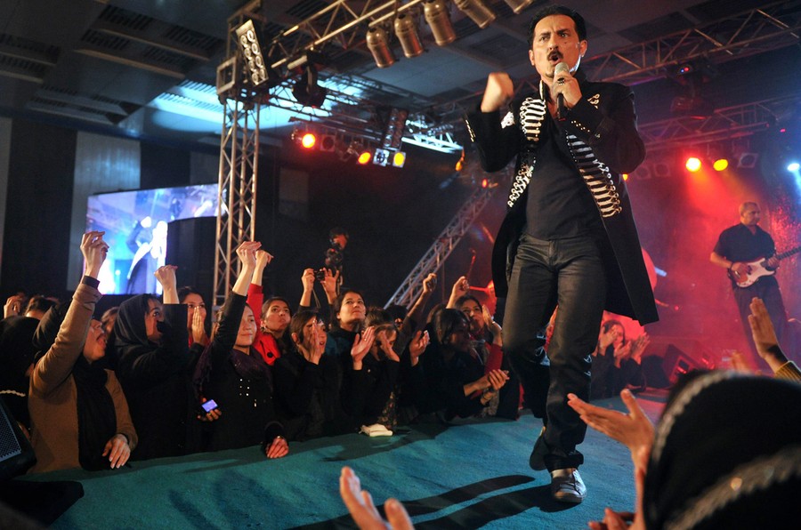 Read moreAfghan Elvis, singer Farhad Darya, a United Nations goodwill ambassador performs during a concert for Afghan girls and women at Amani high school in Kabul on November 24, 2011. Dubbed the Afghan Elvis, Darya may be the only man in his country who can reduce an audience of headscarf-clad women to a screaming, waving, whistling throng. #