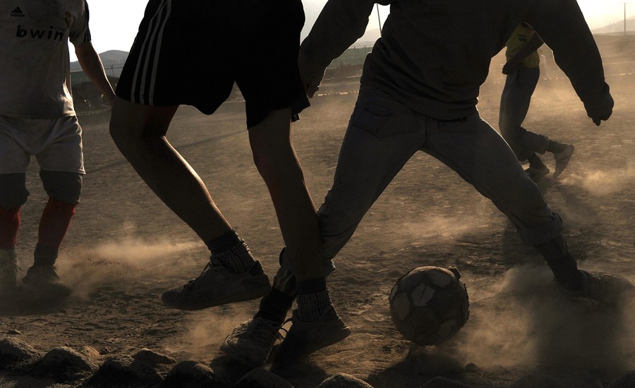 Read moreAfghan boys play football in a field in Kabul, on December 21, 2011. Football is one of the most popular games in Afghanistan and is played on dusty dry ground more often than grass. #