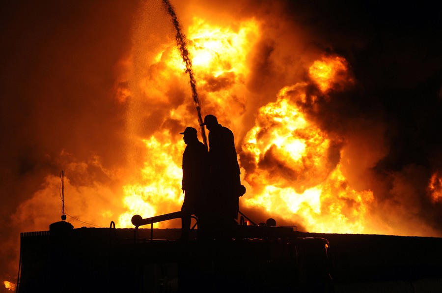 Read moreFirefighters extinguish burning NATO supply oil tankers and goods trucks at a terminal following an attack by gunmen in Quetta, Pakistan, on December 8, 2011. 20 trucks were ablaze after a rocket attack, officials said. #