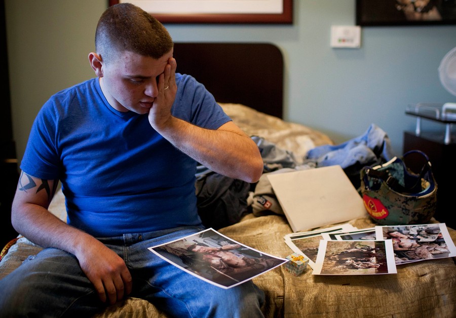 Read moreIn this Tuesday, December 13, 2011 photo, injured United States Marine Cpl. Burness Britt reacts after seeing pictures of his evacuation laid out on his bed in the Hunter Holmes Medical Center in Richmond, Virginia. Britt is facing a long recovery after a large piece of shrapnel from an IED in Afghanistan in June 2011 cut a major artery on his neck. During his first operation in Afghanistan he suffered a stroke and became partially paralyzed. AP Photographer Anja Niedringhaus followed Britt's progress after taking photos of his evacuation, and six months later, met up with him to see how far he'd come. #
