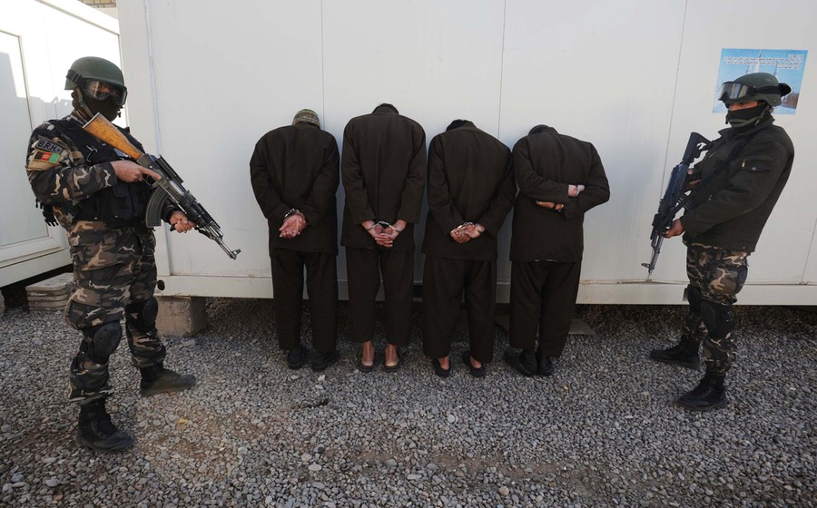 Read moreAfghanistan's commando forces stand guard near four Taliban fighters in Herat, on December 29, 2011. According to the Afghan officials, the Taliban fighters were captured during an operation carried out by Afghanistan National Army (ANA) commandos. #