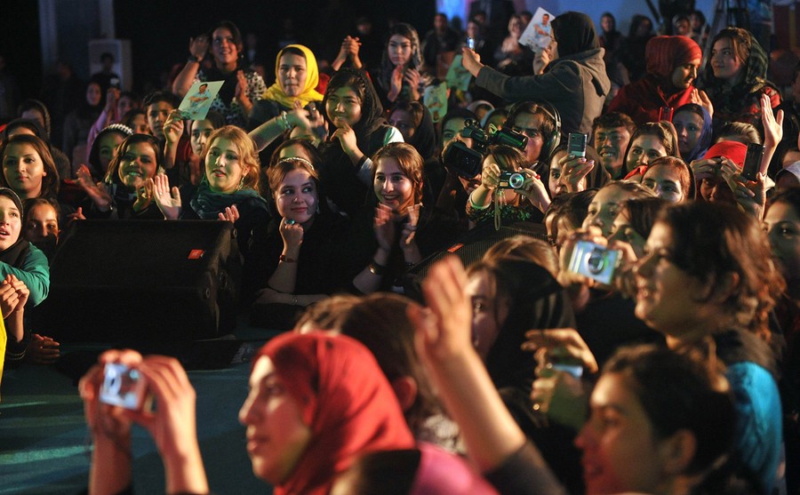 Read moreYoung Afghan girls and women enjoy a concert by Afghan Elvis, singer Farhad Darya, at Amani high school in Kabul, on November 24, 2011. In a country where women still have limited rights and music was banned under the Taliban until ten years ago, Darya is an icon for millions and his popularity was clear at a rare, top security, female-only show in Kabul. The show was shrouded in secrecy due to fears it could be targeted by the Taliban. #