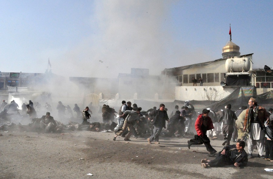 Read morePeople react seconds after a suicide blast targeting a Shi'ite Muslim gathering in Kabul, on December 6, 2011. A suicide bomber attacked the Shi'ite Muslim shrine in central Kabul, where a crowd of hundreds had gathered for the festival of Ashura, killing up to 20 people in what appeared to be an unprecedented sectarian attack #