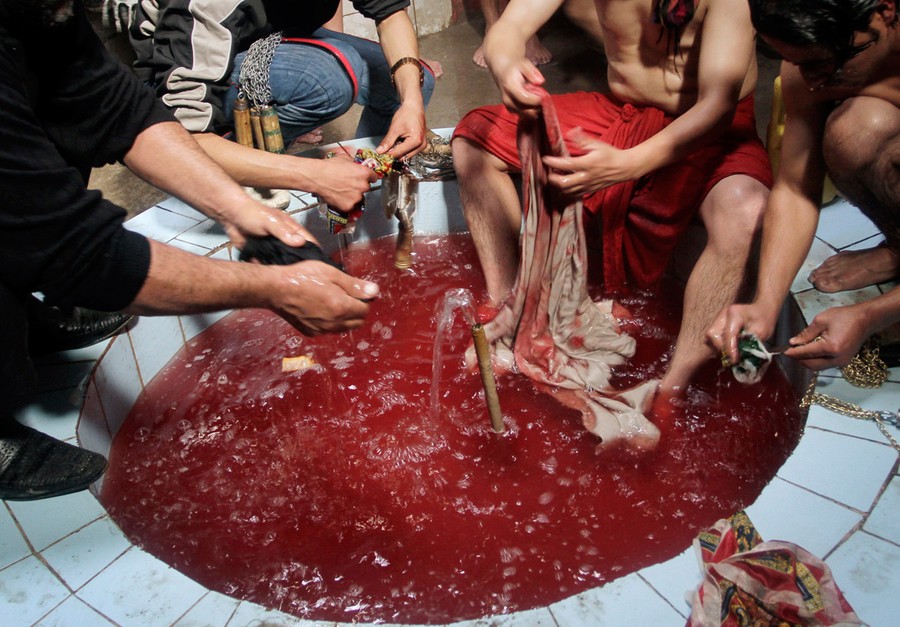 Read moreAfghan Shi'ite Muslims wash their knives and bloodstained clothes after beating themselves with knives during the Muharram procession in Kabul, Afghanistan, on December 3, 2011. #