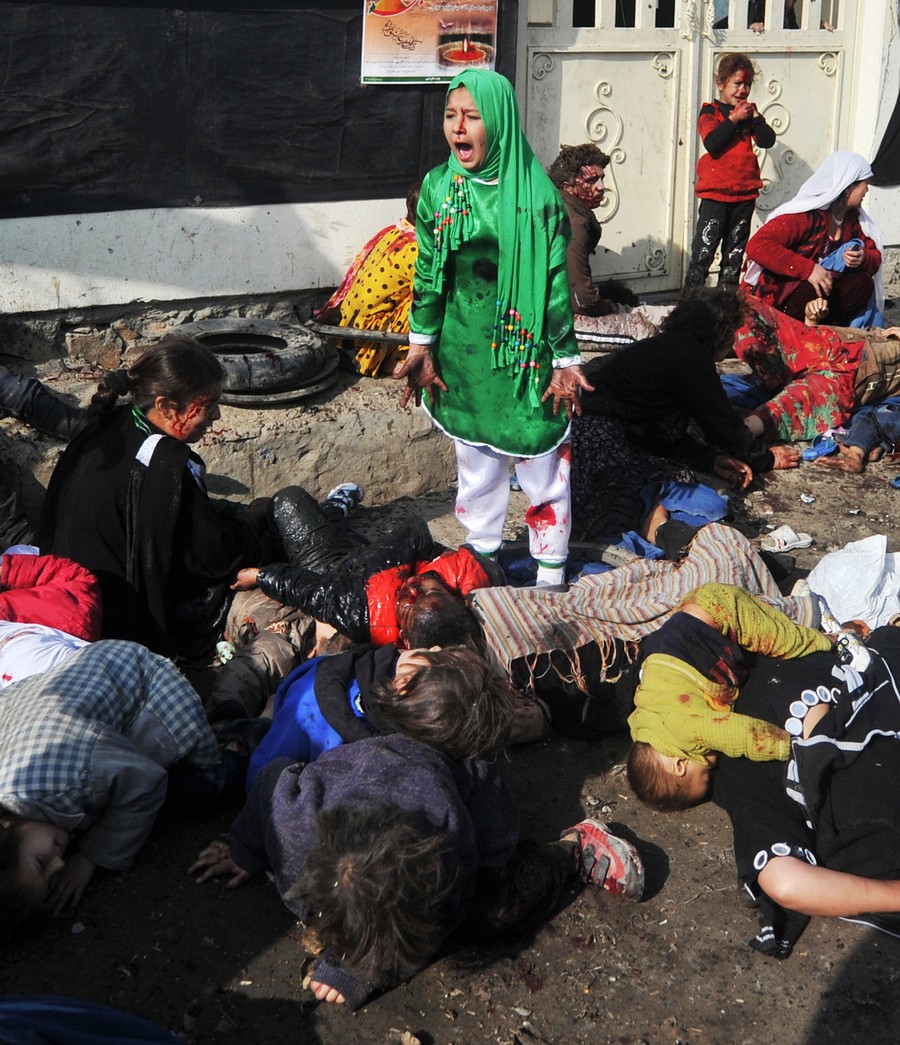 Click to view imageRead moreTarana, age 12, stands screaming, surrounded by the bodies of men, women and children who were just killed by a suicide bomber who detonated a bomb during a religious ceremony in Kabul on December 6, 2011. "When I could stand up, I saw that everybody was around me on the ground, really bloody. I was really, really scared," said the girl, whose name means "melody" in English. Out of 17 women and children from her family who went to a riverside shrine in Kabul that day to mark the Shiite holy day of Ashura, seven died including her seven-year-old brother Shoaib. More than 70 people lost their lives in all, and at least nine other members of Tarana's family were wounded. The blast has prompted fears that Afghanistan could see the sort of sectarian violence that has pitched Shiite against Sunni Muslims in Iraq and Pakistan. #