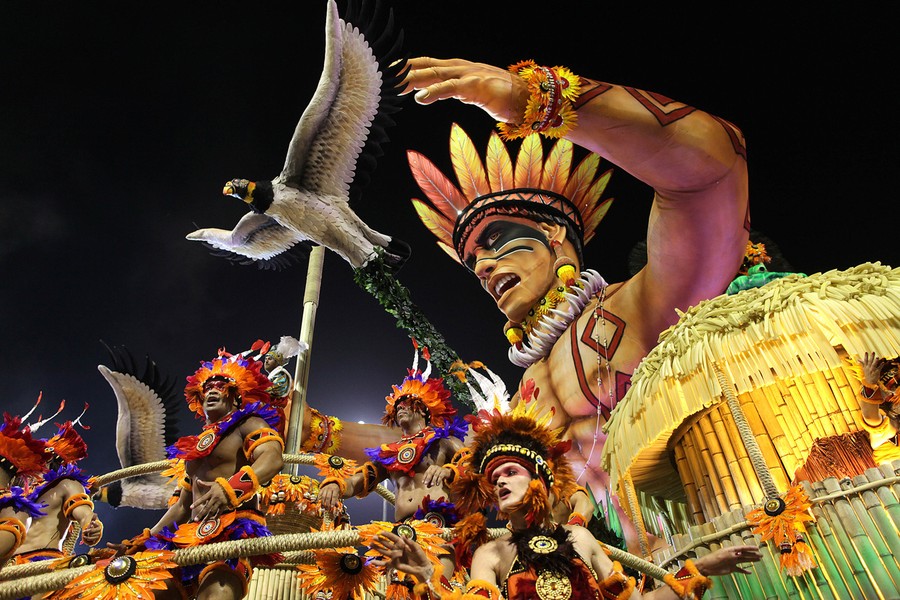 Carnival Season 2012 is nearing its end. All over the world, celebrations have been held as a final pre-Lent bacchanalian festival -- a way to usher out the winter and welcome spring. Across Europe and the Americas, parades and festivals have been taking place for nearly a month, culminating in the largest, most famous party of all: the Carnival in Rio de Janeiro, Brazil. In Rio this weekend, millions took to the streets for days of rowdy, joyous parades and festivities, bringing the nation to a halt for its annual wild party. Nearly 800,000 Brazilian and foreign tourists were expected join Rio's six million residents in the celebrations, whose climax comes on Sunday and Monday with the city's top samba schools putting on their extravagant processions. Gathered here are recent images of carnivals around the globe. [Also, don't miss Part 2, More from Carnival 2012]